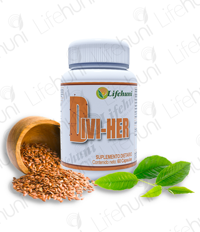 DIVI-HER contiene una fibra natural que al hacer contacto con el agua incrementa su volumen más de cien veces, por lo tanto disminuye el apetito y produce sensación de saciedad.
